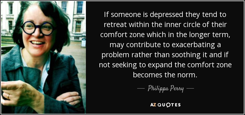 If someone is depressed they tend to retreat within the inner circle of their comfort zone which in the longer term, may contribute to exacerbating a problem rather than soothing it and if not seeking to expand the comfort zone becomes the norm.