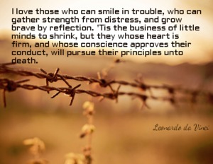 I love those who can smile in trouble, who can gather strength from distress, and grow brave by reflection. 'Tis the business of little minds to shrink, but they whose heart is firm, and whose conscience approves their conduct, will pursue their principles unto death.